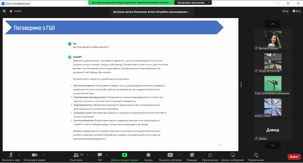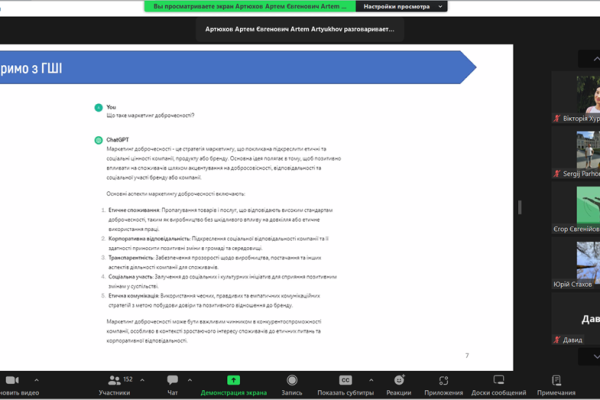 On March 14, 2024, European Medical School joined the #non-format_for_donation initiative, supporting the Marketing of Integrity Online Charity Seminar initiated by Artem Artiukhov, a Member of the National Agency for Higher Education Quality Assurance and the Chair of the Ethics Committee of the National Agency. Participants acquired valuable knowledge and tips from the leading expert as well as discussed crucial issues, relevant case studies and problem tasks. Students, academic staff and administration of the University took part in the seminar. The seminar included the fundraising for the needs of the Armed Forces of Ukraine. All attendees received certificates. We express our sincere gratitude to speaker Artem Artiukhov for the great initiative and very interesting interactive lecture!