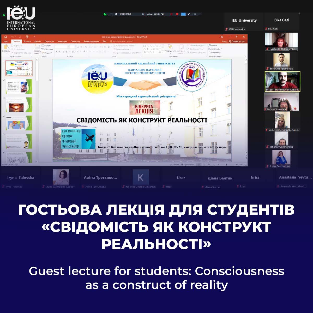 10 травня 2023 року для студентів спеціальностей 053 «Психологія», 242 «Туризм» та 035 «Філологія» була проведена гостьова лекція на тему: «Свідомість як конструкт реальності».