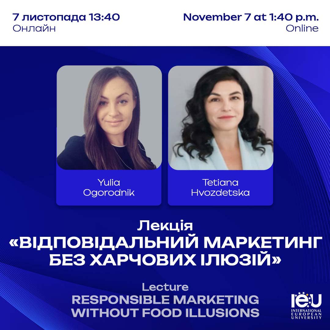 07 листопада 2024 року о 13:40 відбудеться унікальна можливість для студентів — гостьова онлайн-лекція на тему: «Відповідальний маркетинг без харчових ілюзій». Ця подія присвячена Дню маркетолога в Україні і стане чудовою нагодою поглибити свої знання у сфері відповідального маркетингу та захисту прав споживачів.