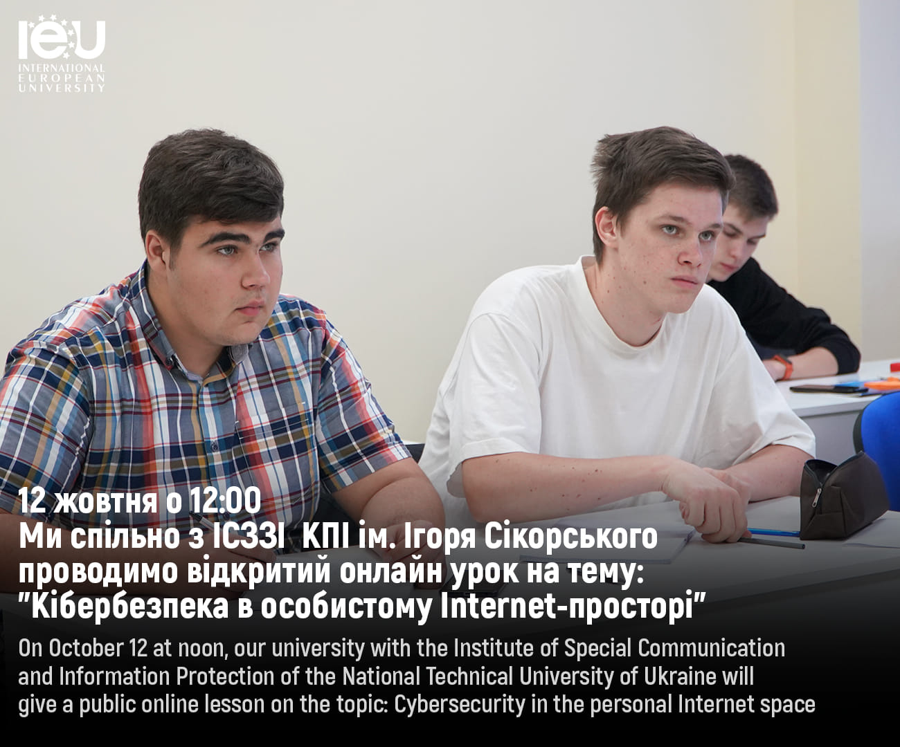 У межах цієї ініціативи, 12 жовтня о 12:00 ми спільно з ІСЗЗІ КПІ ім. Ігоря Сікорського проводимо відкритий онлайн урок на тему: "Кібербезпека в особистому Internet-просторі".