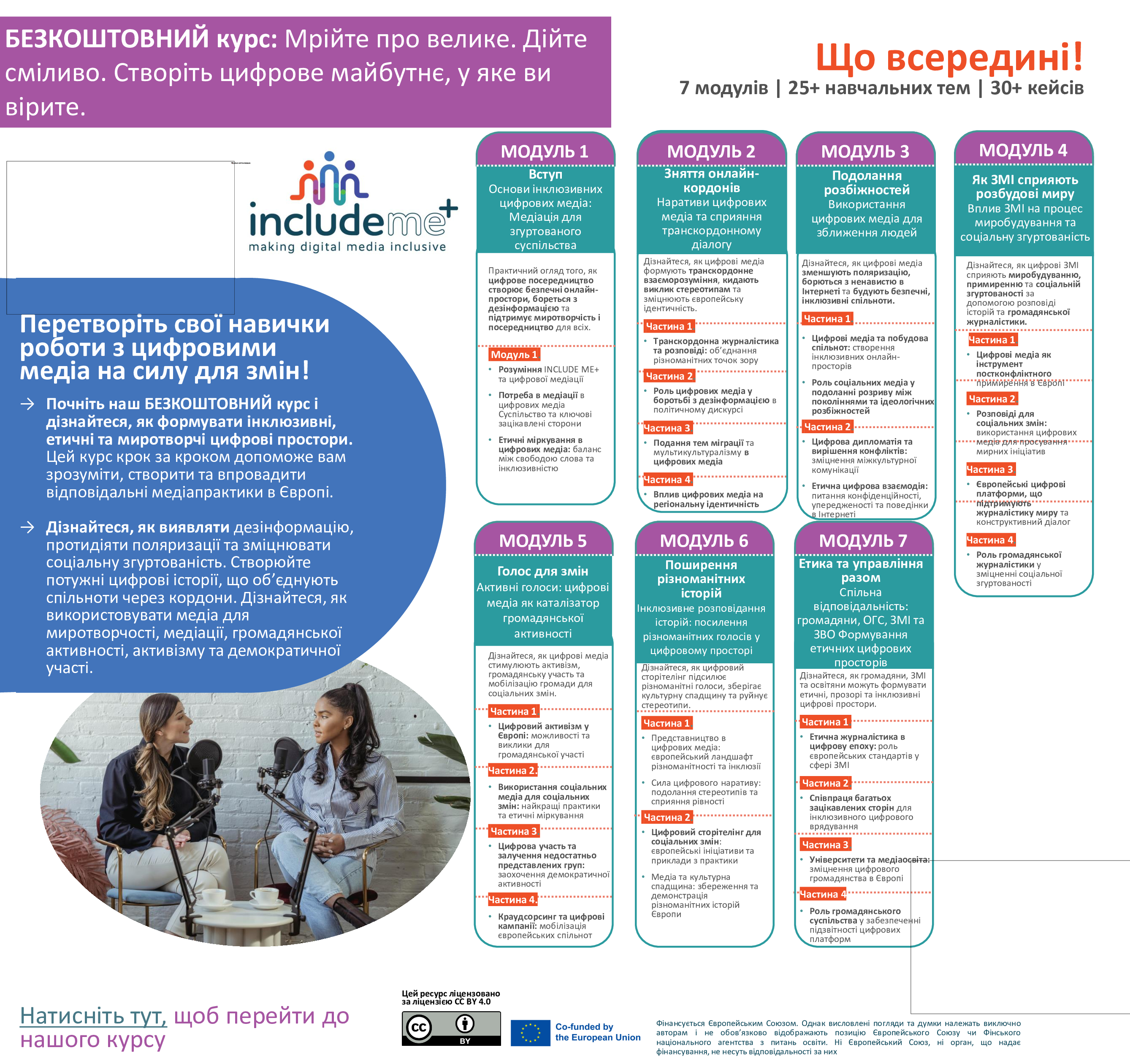 Within the framework of the international INCLUDE ME+ project, the online course “Digital Media for Inclusive Peacebuilding” has been introduced, offering new opportunities for developing digital competences, intercultural dialogue, and inclusive education. The course is designed to promote a modern approach to using digital media as a tool for social change, participation, and peacebuilding.