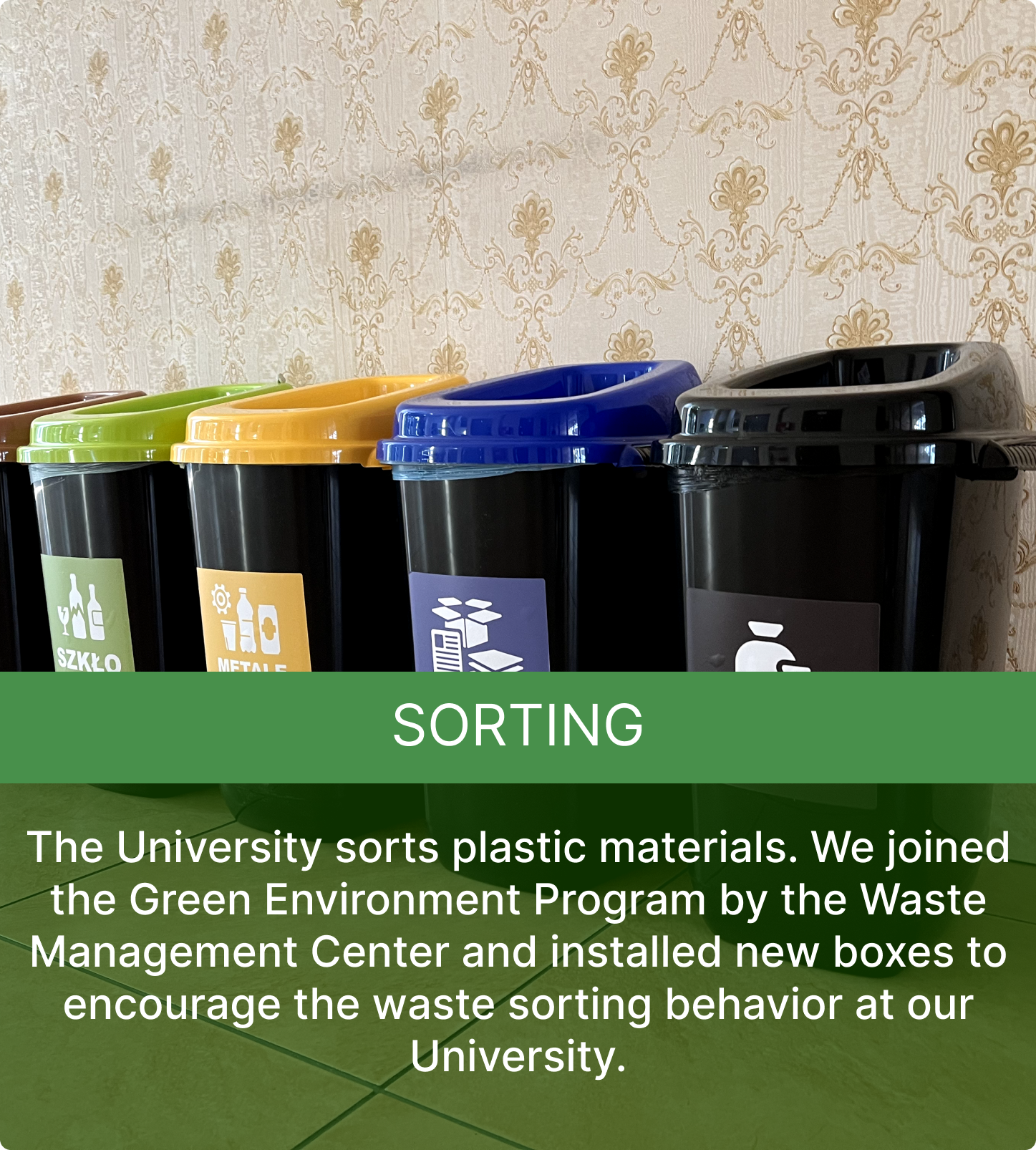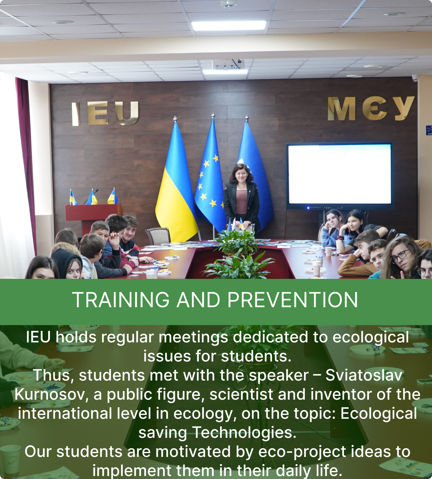 IEU promotes an eco-friendly lifestyle by holding eco-marathons, taking part in international eco-projects, sorting waste, encouraging the principles of conscious consumption, etc.